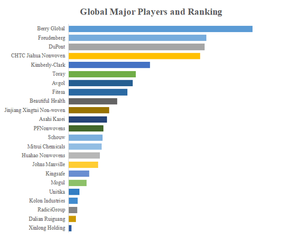 QYResearchのトップ企業研究センターによると、スパンボンド不織布製品の世界的な主要製造業者には、Berry Global、Freudenberg、DuPont、CHTC Jiahua Nonwoven、Kimberly-Clark、Toray、Fitesa、Avgol、Beautiful Health、Jinjiang Xingtai Non-wovenなどが含まれている。2022年、世界のトップ10企業は売上の観点から約35.0%の市場シェアを持っていた。