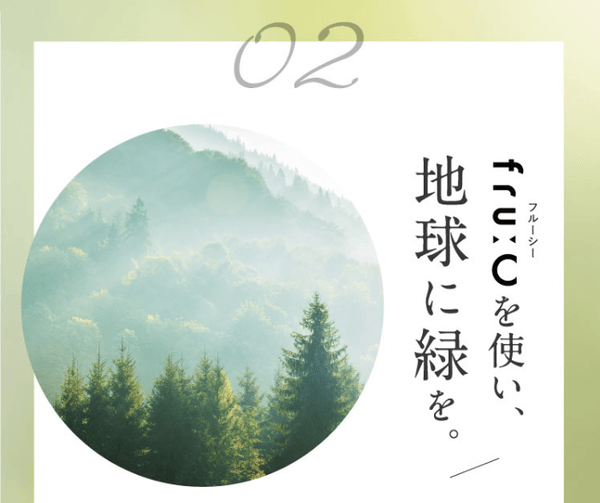 fru:C をお使いいただくことで、地球に緑が増えるよう、売り上げの一部で植樹活動をしていきます。