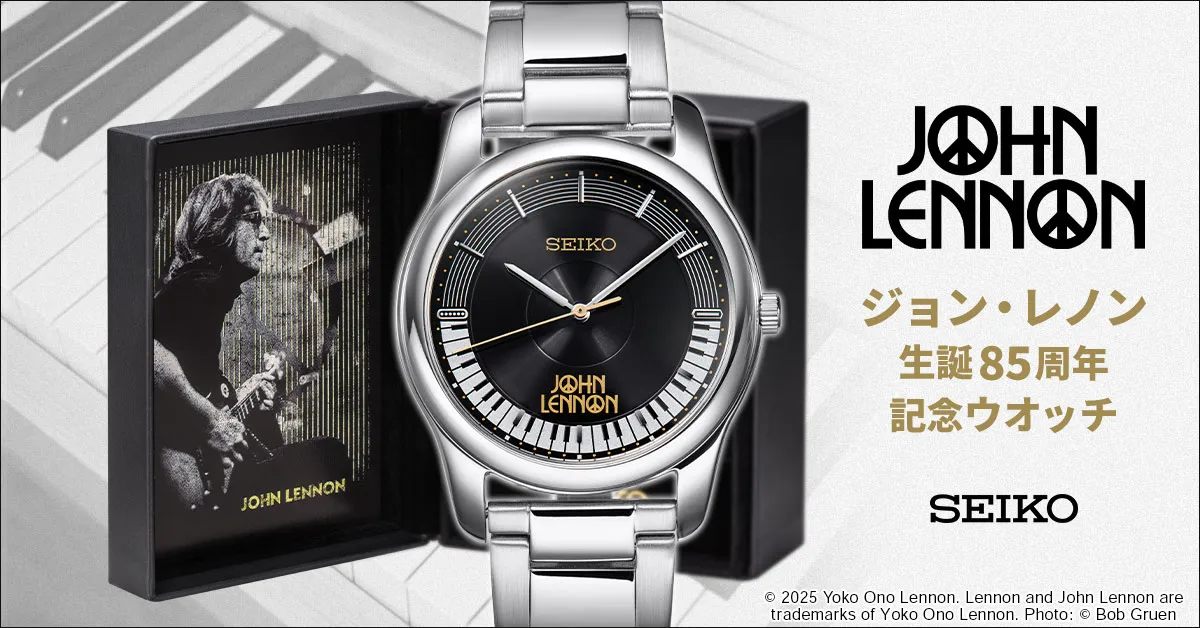 ビートルズのメンバーとして活躍し、ソロとしても「イマジン」「パワー・トゥ・ザ・ピープル」など数々の名曲を遺したジョン・レノン。2025年10月9日にジョン・レノン生誕85周年を迎えたことを記念して、セイコー製の記念ウオッチが登場しました。