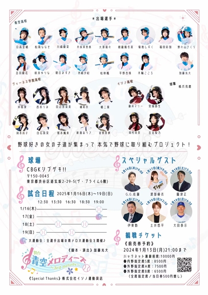女子野球をテーマにした舞台『青空メロディーズ~3rd melody~』上演間近 豪華キャスト陣が集結! ゲストに元西武ライオンズ 伊東勤、G.G.佐藤ほか