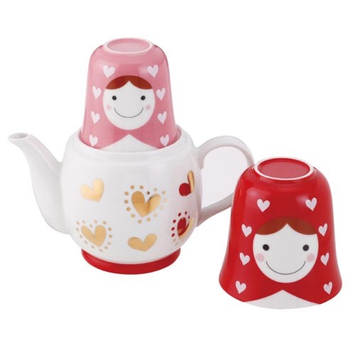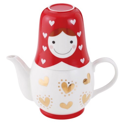ハートデザインはゴールドプリントもあって、上品さも素敵~!白いポットに赤いフタが個人的にはお気に入りポイントです♪クッキーと美味しい紅茶に、このマトリョーシカのティーセットがあれば素敵なティータイムが楽しめるはず!