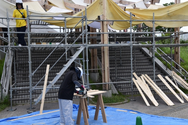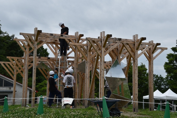 生田研究室は学部生と院生の計26人、佐藤研究室は修士2年の4人、谷田研究室も修士2年の3人が中心となって約1年をかけ、今回の作品の企画案の構成作りから設計、大学内での準備、現地での施行までを行い、完成にこぎつけました。学生や院生たちは「学生だけでの手で何かをつくりあげるのはありがたい経験でした」「失敗も多く、実験を重ねては作り変えるなど試行錯誤して大変でしたが、自由にできて楽しかったです」と手応えを話していました。