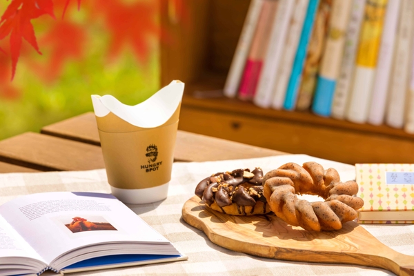 読書と一緒に楽しめるテイクアウトのスイーツやドリンクを販売します。軽井沢で話題のスイーツ店が週末に出店し、ドーナツやバターサンド、クッキーなどの素材を生かした焼き菓子が種類豊富に揃います。また、広場に隣接する「カフェ ハングリースポット」では、信州を代表する秋の味覚「りんご」を使用した季節限定のドリンクを用意します。りんごのほのかな香りとミルクのやさしい甘さに心が和む「ふわふわミルクのアップルティー(HOT)」とりんごの果肉入りの爽やかな「アップルジンジャーティー(HOT・ICE)」(各500円*税込み)の2種です。