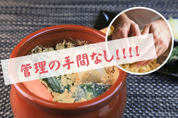ぬか床をかき混ぜたり、塩分・水分調整する必要はありません。