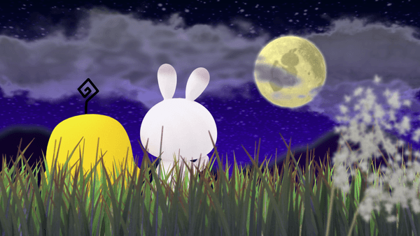 広島ホームテレビのマスコットキャラクター「ぽるぽる」が、秋の夜長にうさぎとお月見。お月さまだと思ったら・・・えっ、ぽるぽる!?