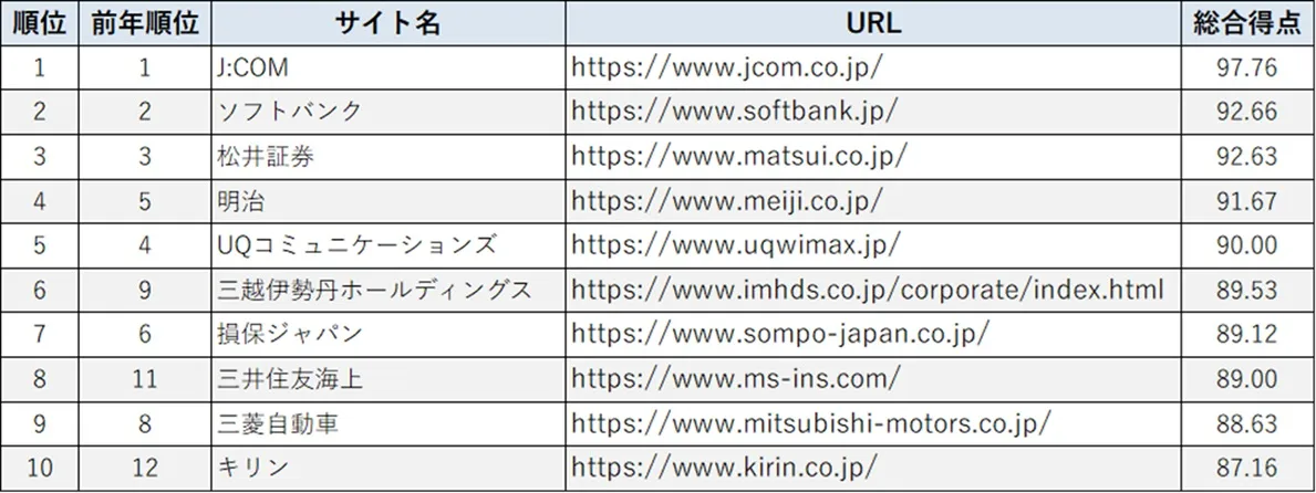 そのような中で、J:COMやソフトバンクなど通信業界の企業がランキングで引き続き高い評価を獲得しています。サービスの種類が多岐にわたるにもかかわらず、アイコンやビジュアルを効果的に用いて内容を整理し、ユーザーが目的の情報へ迷わず進める点などが評価されました。