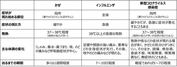 ◆かぜ・インフルエンザ・新型コロナウイルス感染症の違い