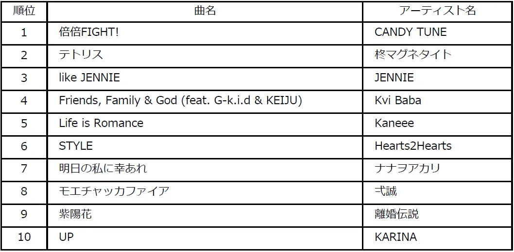 1位楽曲:「倍倍FIGHT!」アーティスト: CANDY TUNE