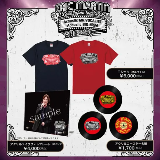 3都市〈東京・横浜・大阪〉を巡る ビルボードライブ・ツアーを開催する エリック・マーティンの 公演限定オリジナルグッズを発売!