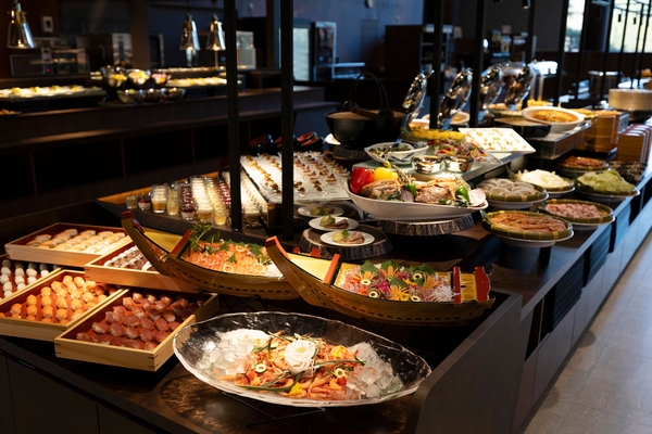 お料理は、岩手初出店を記念して、全国の大江戸温泉物語グループのホテル・宿で好評だった、大江戸温泉物語シェフ考案のオリジナルメニューが大集合します。鶏胸肉と彩り野菜のトンナートやズッキーニと合鴨スモークのカルパッチョなど、見た目にも鮮やかなお料理をご用意しておりますので是非ご賞味ください。ライブキッチンからは岩手県花巻市で生産されているご当地豚を使用した「白金豚のロースト」をご提供いたします。旅の醍醐味のひとつである「食事」を思う存分お楽しみください。