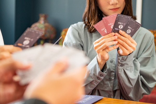遊び方は簡単。まず、プレイヤー4人はそれぞれ自分の演じる登場人物を選択します。そしてそれぞれのキャラクターブックを読み込み、事件発生時に何があったのか、他の人物との関係性などを理解して、そのキャラクターを演じることでゲームが進みます。中には人に言えない秘密や事件解明以外の目的を抱えた人物も。自分が持っている情報を公開するか、嘘をつくかの選択は自由。議論で自分や周りの推理が変わっていくスリルと、限られた情報を手繰り寄せて事件を紐解いていく緊張感はマーダーミステリーならではの体験です。