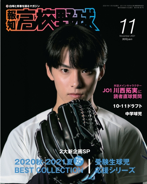 JO1の川西拓実さんの連載第5弾は、読者からの直球質問。「激動2021」では、今夏限りで監督を退いた帝京・前田三夫名誉監督、激戦区・大阪を熱くする古豪・興国に迫ります。明桜・風間球打投手のインタビューなどドラフト直前特集に、今後の飛躍が期待される全国の1、2年生をチェック。中学球児の活躍もグラビア満載でお届けします。来年のセンバツが待ち切れない、秋の夜長のお供に。