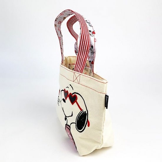 ミニトートバッグは、ちょっとしたお散歩などにも使えて便利です。大好きなスヌーピーのデザインなら、気分もアガること間違いなしですよ♡