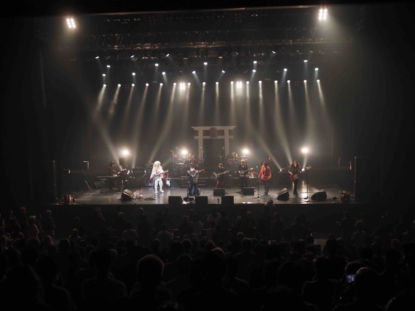 17時。1曲目「水金地火木土天回明」でステージは幕を開ける。ステージ上には加納秀人(Vo.Gt.)、そうる透(Dr.)、松本慎二(B)の外道3名のみ。まずは純粋な外道のストレートな演奏で会場を温める。ベースの松本慎二による最初のMCは「外道は50年もこんなことやっているんですよ。そして加納さんは55年もこんなことやっているんですよ」という愛ある自虐で、会場からは温かい笑いが起きる。2曲目からは新録アルバムのサウンド・プロデュースを勤めた難波弘之(Key)が加わり「天国への道」、「イエローモンキー」、「ビュンビュン」など往年の代表曲を立て続けに演奏、加納秀人の熱いMCもあり会場のヴォルテージはグングン高まっていく。そして9曲目の「Summer Time」ではスペシャルゲスト金子マリがヴォーカルで登場。往年のロック・ファンから歓喜の声が上がる。以降、森園勝敏、山本恭司と名ギタリストが立て続けに登場。JIMI HENDRIXの「Little Wing」、「Voodoo Chile」などを披露し、早くも前半のピークを迎える。