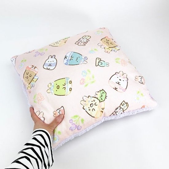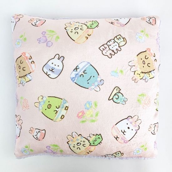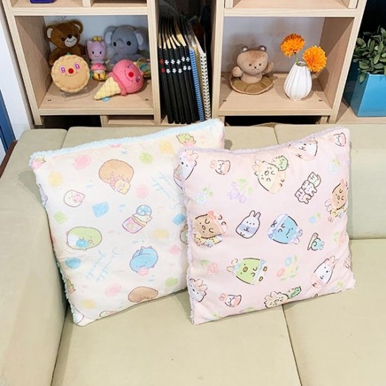 ふわもこクッションのデザインを3つご紹介できたらと思います。まずはうさぎデザインから♪すみっコの仲間たちがうさぎに変身している、とっても可愛いデザインです。パステルカラーも癒されますよね!