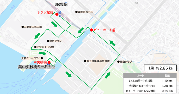 ●走行ルート :レクレ館前~中央桟橋~ビューポート前~レクレ館前(下記図参照)