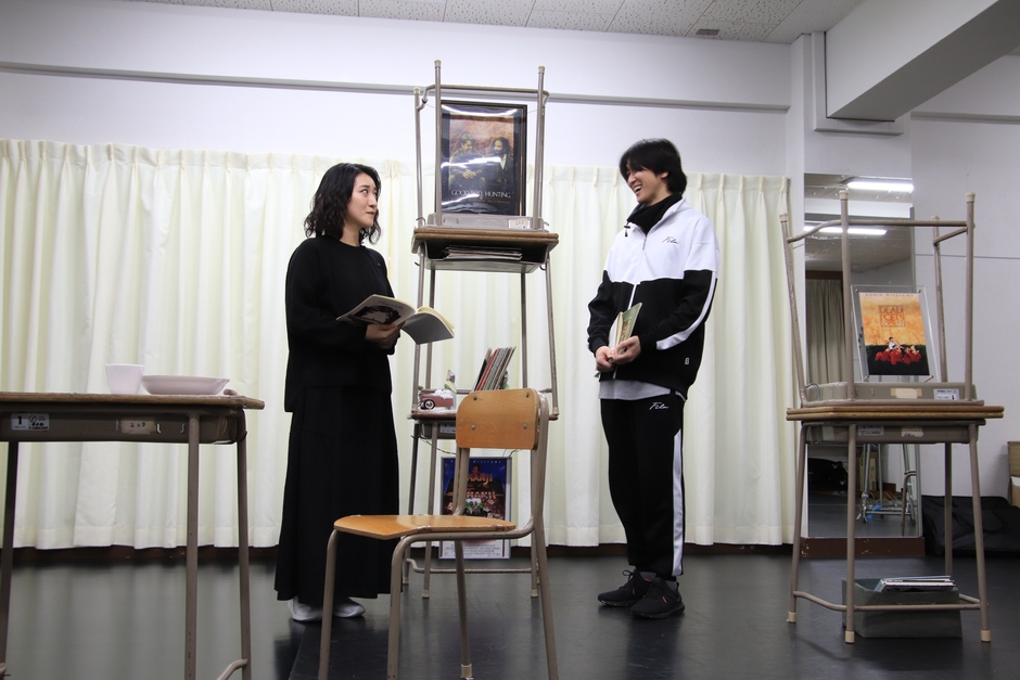 この日は、まだ稽古が始まって2日目。キャストたちは台本を片手にミザンスを体に刻み込んでいく。シーンの合間には、上田が「まだ人生2回目だからね」と笑いながらも、それぞれのキャストとともに細かな芝居を確認する様子も見られた。