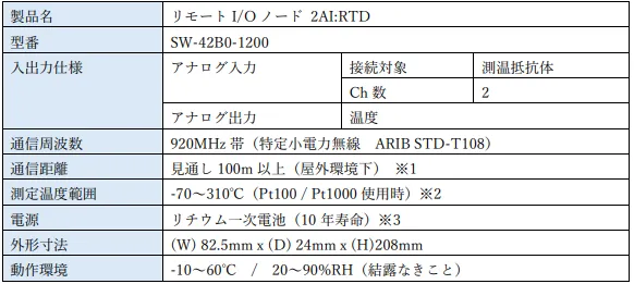 バッテリ寿命10年、測温抵抗体の温度データを無線送信するリモートI/Oノードを販売