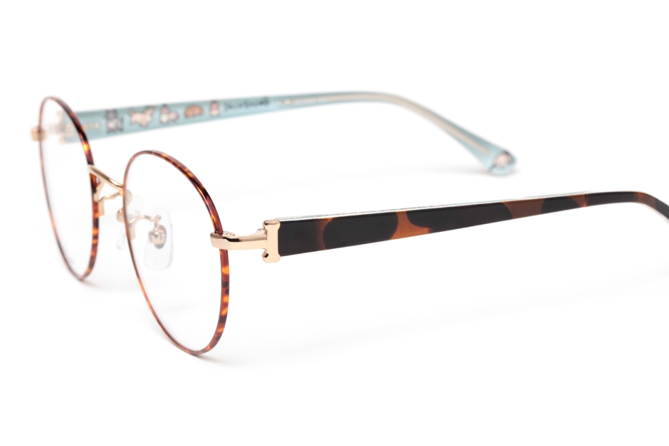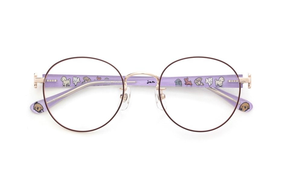 フレームの内側には、じゅんさんデザインのワンちゃんたちがいろんな表情で顔を覗かせ、メガネと一緒に寄り添ってくれます。