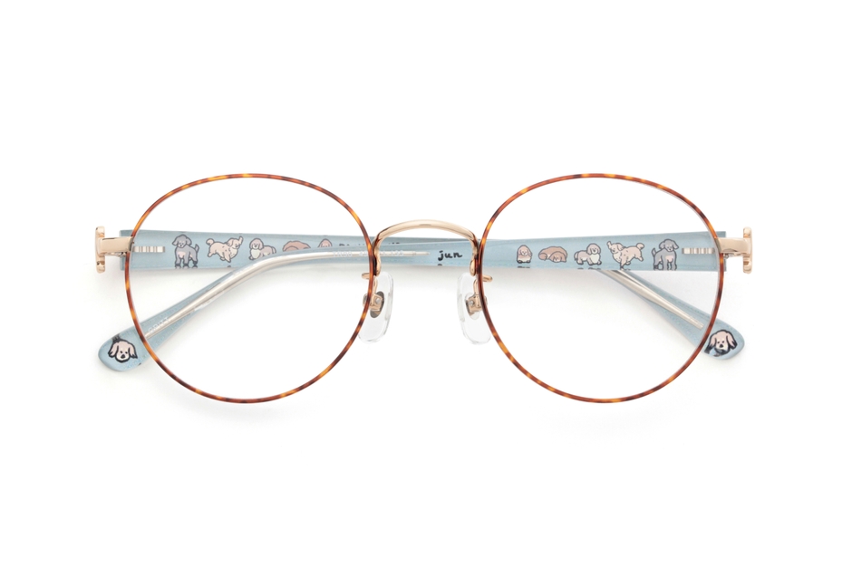 身近な動物をテーマにしたメガネフレーム「みんないきもの」シリーズより、ワンちゃんをモチーフにした「いぬめがね」。第二弾のコレクションは、SNS等で話題のイラストレーターのじゅんさんにデザインを担当していただきました。