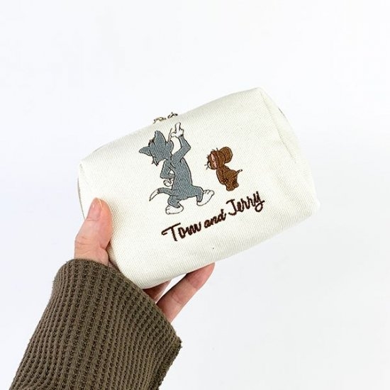 人気で実用性も高いキャンバス地のシリーズで、刺繍されたトムジェリも後ろ姿なのがオトナな雰囲気♪