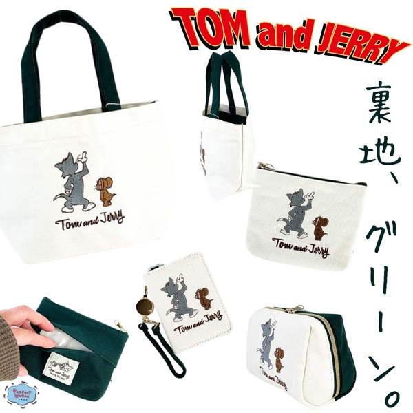 話題沸騰中のトムとジェリーに、オトナなキャンバスシリーズが登場しました。ホワイト×グリーンのバイカラーがオシャレなキャンバス素材のアイテムで、毎日使うパスケースやポーチなどのおなじみグッズが揃いました。早速見てみましょう。