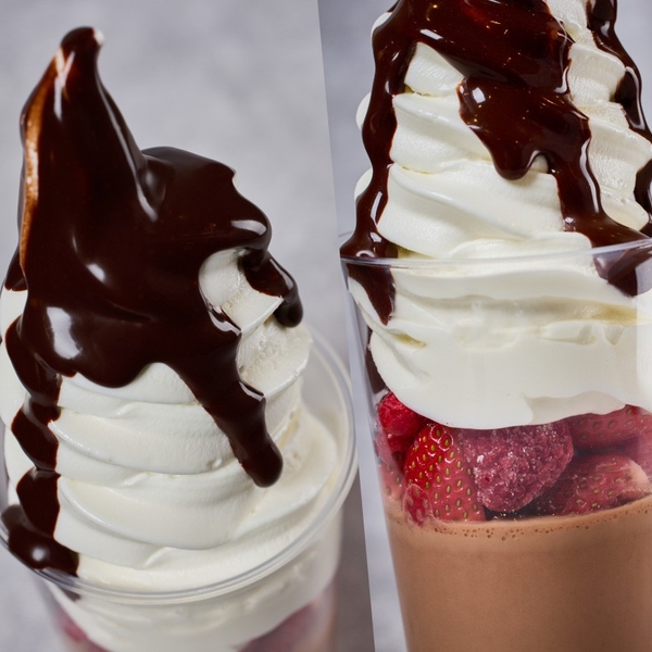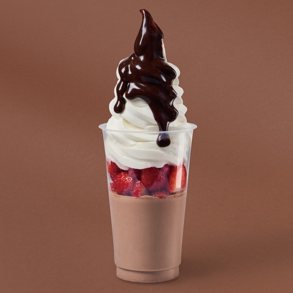 濃厚なチョコレート×甘酸っぱい苺のマリアージュ「生チョコプリンソフト」