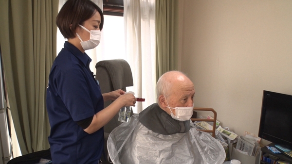 また、月1回のペースで髪をカットしている高齢者のお宅を訪れた玉本さん。カットを開始すると、髪ではなく“櫛(くし)”に水を吹きかけました。一体なぜでしょう?そこには高齢者のお客さんへの細やかな配慮がありました・・・。