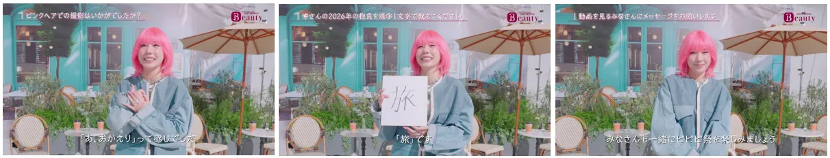 CMには、“最高の自分”を常に楽しんでいる象徴として仲 里依紗さんが登場。ピンクヘアにイメージチェンジした仲さんが、ネイルやまつ毛パーマ、リラクにエステなど、それぞれのビューティーを楽しむ人たちに出会い、輪が広がっていく様子を通じて、ビューティーを自分らしく楽しむことのワクワク感をドラマチックに描きました。撮影の感想や2026年の抱負、プライベートで挑戦したいことなどを聞いた仲さんへのインタビューと、撮影の裏側を収めたメイキング動画も公開します。