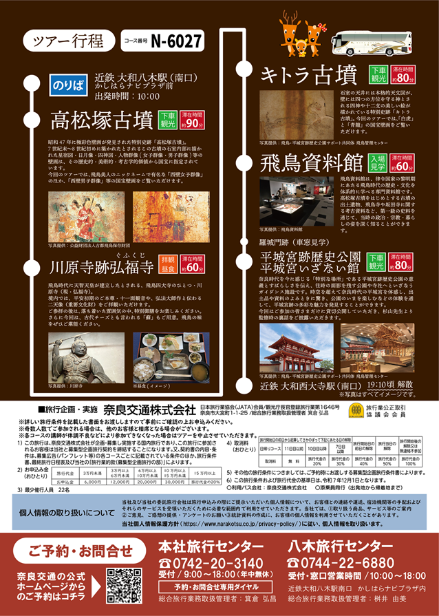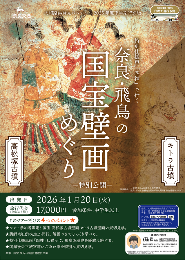 奈良交通株式会社は、国営飛鳥・平城宮跡歴史公園と共催し、「奈良・飛鳥の国宝壁画めぐり」バスツアーを企画いたしました。