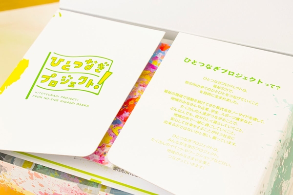 「ひとつなぎプロジェクト」に賛同した大阪シーリング印刷株式会社(本社:大阪市天王寺区)の協力があり、20種類のアート作品を製品にすることが出来ました。