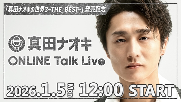 そして、直近の楽しみとして決定したのが、1月5日12:00からの「新春 ONLINE Talk Live」だ。これは元日に発売される初のベストアルバム『真田ナオキの世界3 ~THE BEST~』の発売を記念して行われるもの。当日はYouTubeにて、アルバムへの想いや新年の抱負を語るほか、チャット機能を通じてファンとリアルタイムで交流する予定だ。さらに、真田ナオキから、重大発表も!?