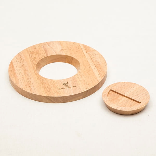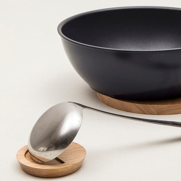 鍋料理に便利な木製の鍋敷きは、中央が取り外しのできるお玉置きになっているので、使い終わったら、コンパクトに収納できます。
