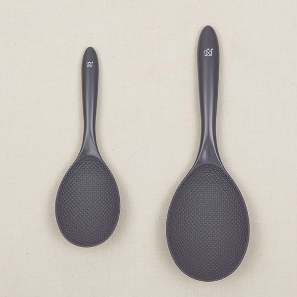 しゃもじは、Wエンボス加工でお米がつきにくく、テーブルに置いても、先端が直接触れない形状に。