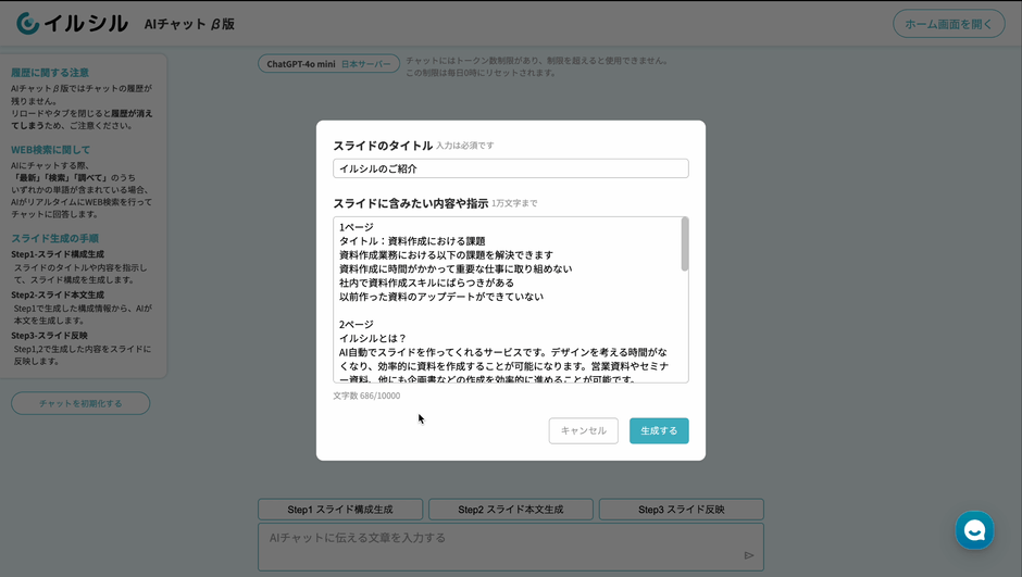 「イルシル」サービス内でAIとのチャットからスライドをAI生成できる機能を追加しました。