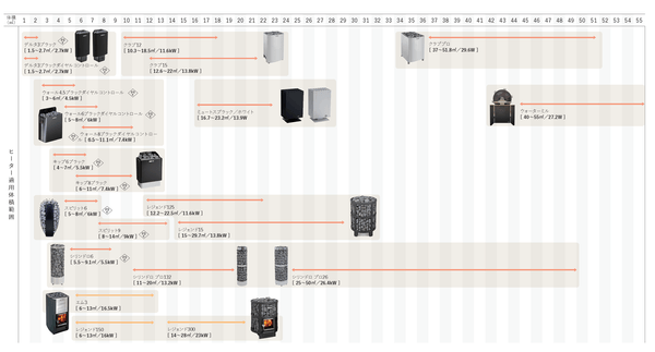 1.5㎥から55㎥まで、あらゆるサイズのサウナ室に対応できる最強のポートフォリオを実現