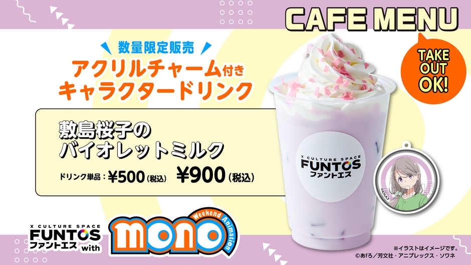 期間中(2025年4月23日~2025年5月26日)、アクリルチャーム付きドリンク900円(税込)、ドリンク単品500円(税込)にて提供いたします。