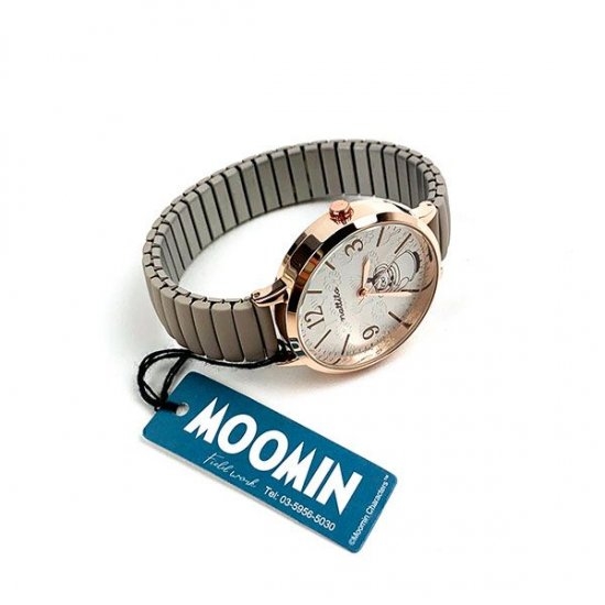 ムーミンから、リトルミィデザインのカービングジャバラウォッチのご紹介です。ラウンドフェイスの文字盤に、ベルト部分が伸縮性のあるジャバラになった腕時計です。つけ外しが簡単でデザインもとってもキュート。