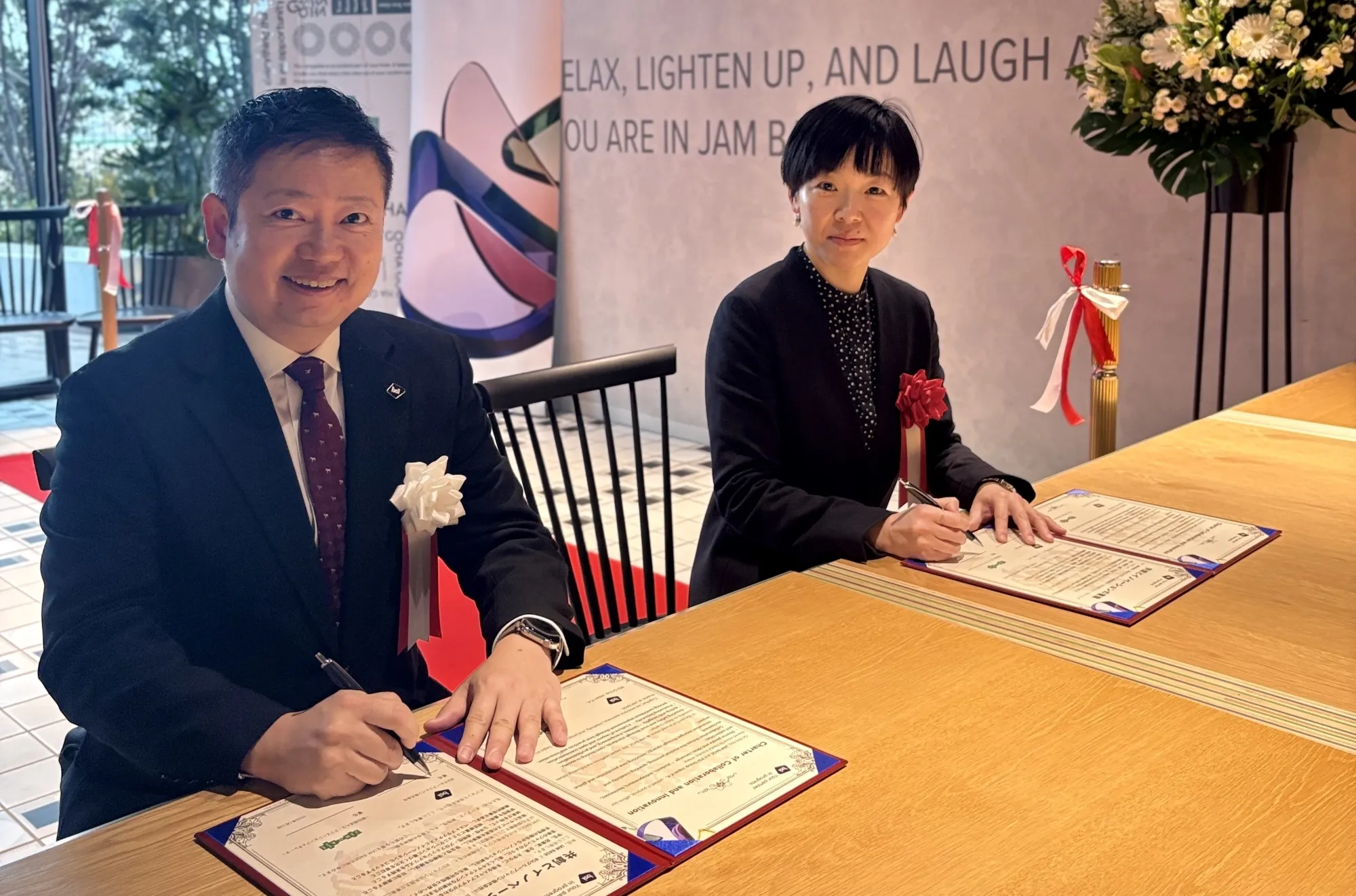 調印式写真(2) 写真右からJAM BASE運営管理 一社)コ・クリエーションジェネレーター 事業統括次長 岡村 由里子様 BSIジャパン 代表取締役社長 漆原 将樹