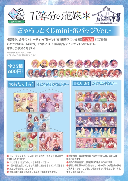 本イベントでは、AU-COOPで展開された大人気『五等分の花嫁』グッズを多数取り揃え、手に入れられなかったグッズや掘り出しモノを見つけるチャンスです。ぜひご期待ください。