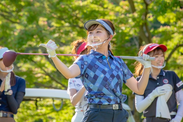 そして、華やかなゴルフファッションもこの番組の見どころ。なみきさんはさわやかなブルーのシャツとパンツのユニセックスな魅力あふれるコーディネート。それに対し、ペアを組む米澤有プロは肩口にラメをあしらった濃いピンクのミニと、女子力たっぷりのフェミニンファッションで戦いに挑みます。白×グレーに、レトロかわいい帽子を組み合わせた三枝こころさんのファッションも、「イメチェン?」「カントリー風?」と出演者たちから大注目。それぞれの個性を際立たせる最新ゴルフファッションに身を包んだゴルフ女子たちの頂上決戦をお見逃しなく。