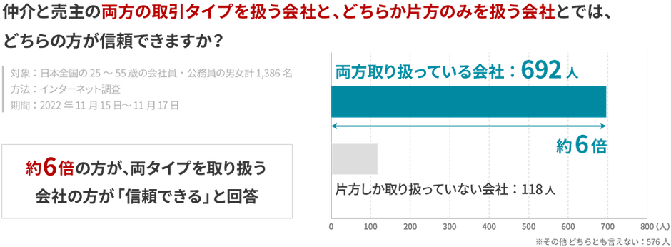 (3)両タイプを取り扱う会社は、片方のみの会社と比べて約6倍の信頼を獲得している