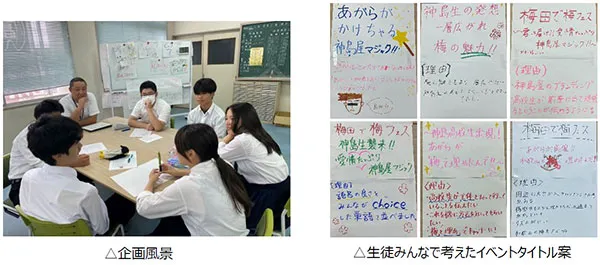 本イベントは、当社が白浜町での拠点運営などを通じて生まれた紀南地域との交流を背景に、普段は地域のイベントを中心に活動している同校の地域連携プロジェクト「神島屋」の取り組みを、より多くの方に知っていただきたいという思いから実施するものです。当社が保有する大阪・梅田の「OS広場」で開催することで、地域の活動が都市へと広がるきっかけをつくり、紀州南高梅をはじめとする地域の魅力を発信します。