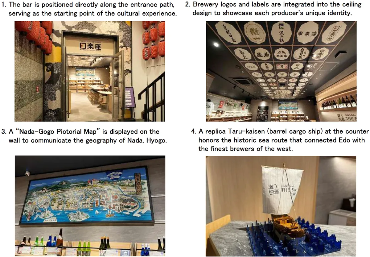 空間演出においても、日本酒を単に飲むだけでなく、酒造りの背景にある歴史、流通、地域性を紹介することで、日本酒文化への理解を深められる体験拠点を目指しています。
