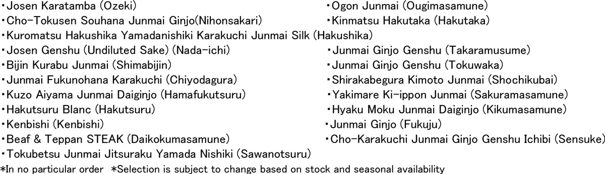 ※仕入れ状況および季節により、提供銘柄は変更となる場合があります。