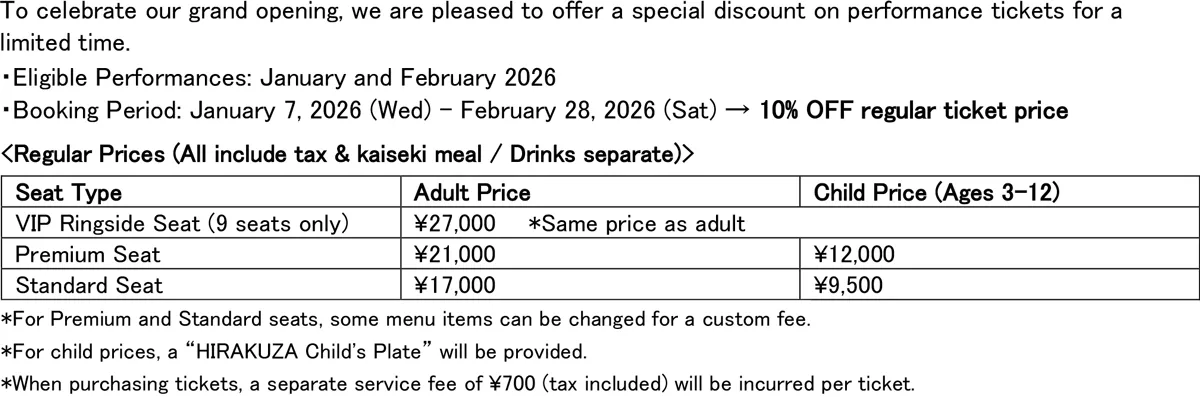 開業を記念し、以下の期間で公演チケットを割引で販売しています。