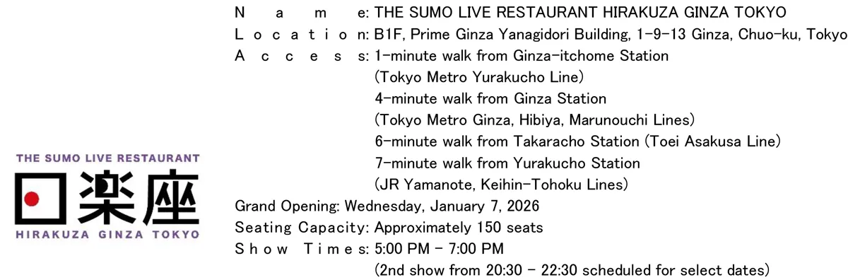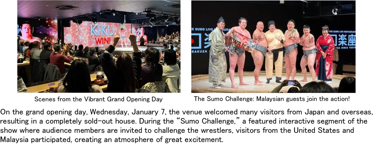 Hanshin Contents Link Corporation (Headquarters: Fukushima-ku, Osaka; President: Susumu Shimizu) held the grand opening of “THE SUMO LIVE RESTAURANT HIRAKUZA GINZA TOKYO,” a Sumo entertainment show restaurant aimed at inbound tourists that combines Sumo, Japanese cuisine, and Sake, on Wednesday, January 7, 2026, in Ginza, Tokyo.