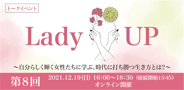 株式会社インターン(本社:東京都中央区、代表取締役:半澤洋)は、次世代を生きる女性の働き方・生き方を創造するイベント『第8回Lady UP(レディーアップ)』を2021年12月19日(日)に開催いたします。8回目となる今回はオンラインでの開催となり、取り組んでいる事業も経歴も異なる二名の女性経営者に対談形式でコラボレートいただきます。