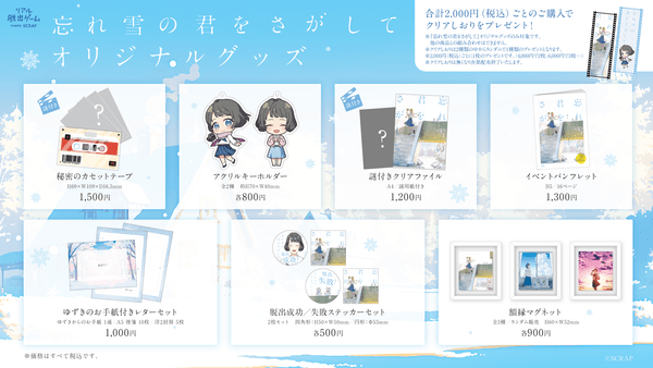 全世界で累計1,490万人以上を動員しているリアル脱出ゲームを企画制作する株式会社SCRAP(本社:東京都渋谷区、代表:加藤隆生)は、新作リアル脱出ゲーム『忘れ雪の君をさがして』のメインキャラクター「ゆずき」の声を声優の早見沙織さんが担当することを発表いたします。また、本イベントのオリジナルグッズも合わせて発表いたします。