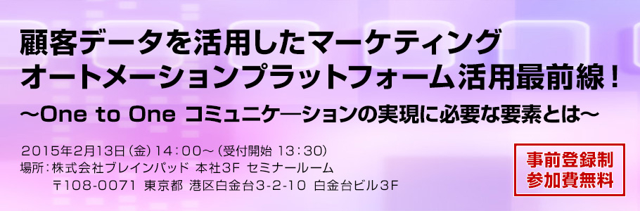 2015年2月3日 15:30 株式会社ブレインパッドは、『顧客データを活用したマーケティングオートメーションプラットフォーム活用最前線!